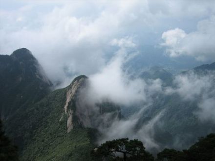 牯牛降天氣一日數(shù)變,有“山中一日游,十里不同天”之說。晴時(shí)蒼崖吐煙,霧靄升騰,云霧繚繞,綿延不絕,變幻萬狀,瑰麗神奇,一會(huì)兒似玉帶,纏繞于峰巒山巔;一會(huì)兒似白絮,鋪瀉在峽谷緩坡。有時(shí)云帶萬里,蔚為壯觀。伸出霧層高高的山尖,如同蓬萊瀛島,人間仙境。若是山風(fēng)激蕩,則云涌霧奔,如大海怒濤,洶涌澎湃,變化萬端;有時(shí)陽光普照,為云層鑲上道道金邊,金碧輝煌,瓊樓玉宇,景象奇絕。