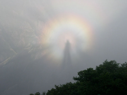 由于牯牛降獨(dú)特的地理及氣候條件,極易形成佛光,牯牛佛光清晰規(guī)整,顯現(xiàn)次數(shù)多,時(shí)間長(zhǎng)。每當(dāng)雨過天晴,云霧匯聚之時(shí),陽光穿云透霧,灑向山谷,云海上常會(huì)懸起一輪五彩光環(huán),光芒四射,艷如花盤,繽紛柔和,仿佛一臺(tái)緩緩滾動(dòng)的佛輦,若隱若現(xiàn),妙趣橫生。通過陽光的作用,若游人奔跑跳躍,光環(huán)中的佛影也隨著舉手投足,配合默契,實(shí)為奇觀。