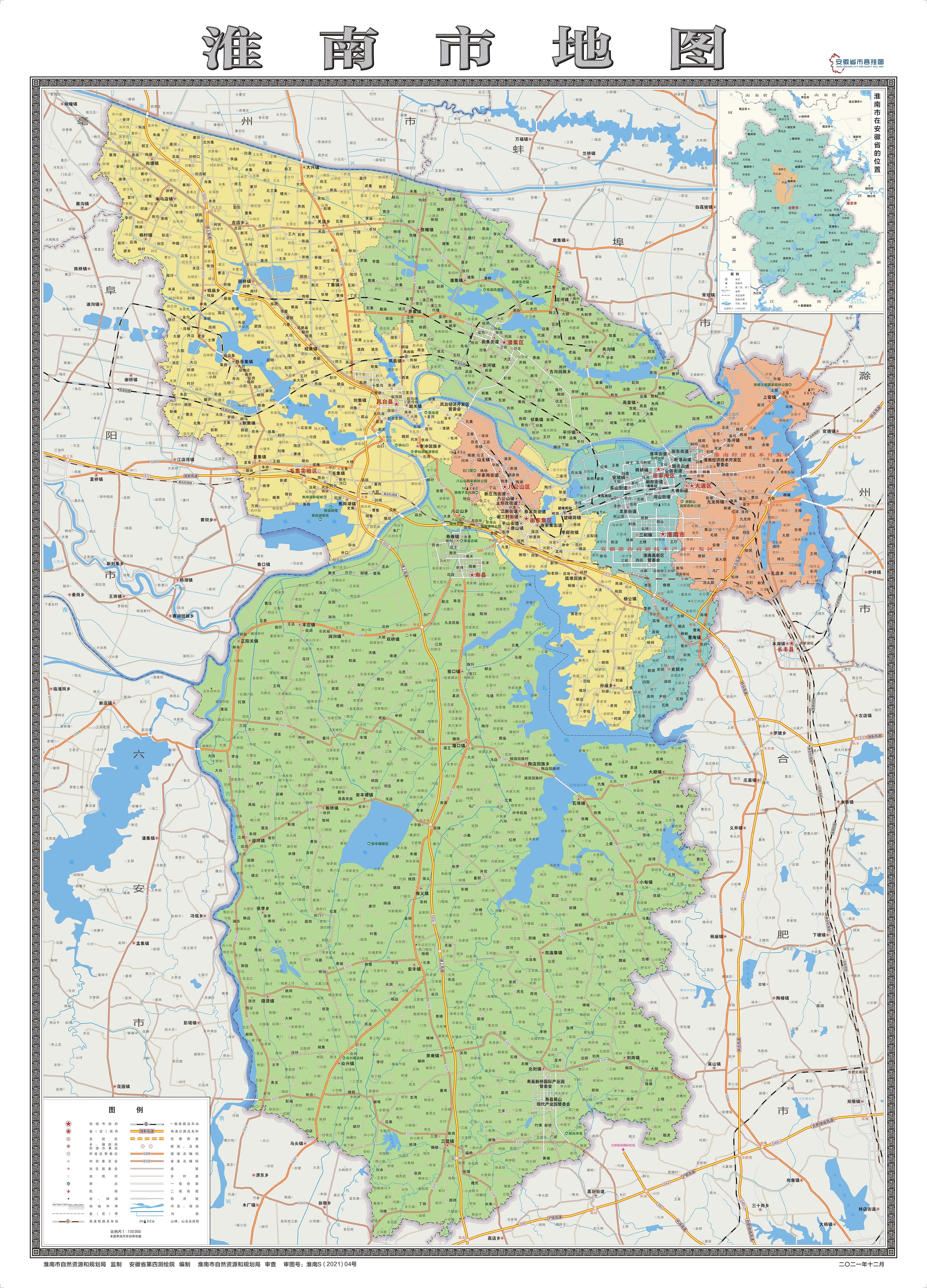 淮南市轄5個市轄區(qū)、2個縣: