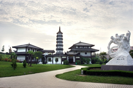 池州園建成的佛像,是為了紀(jì)念地藏王菩薩金喬覺,發(fā)展佛教旅游事業(yè)所建。池州園入口處有一牧童坐在牛背上,一手遙指遠(yuǎn)方的雕塑,順著牧童手指的方向,有一杏花酒肆,徽園杏花村酒肆旁邊的人工湖就是有“中國鶴湖”美稱的升金湖,湖面上的拱橋即梅公橋,是為了紀(jì)念宋代開山鼻祖梅堯臣而建。