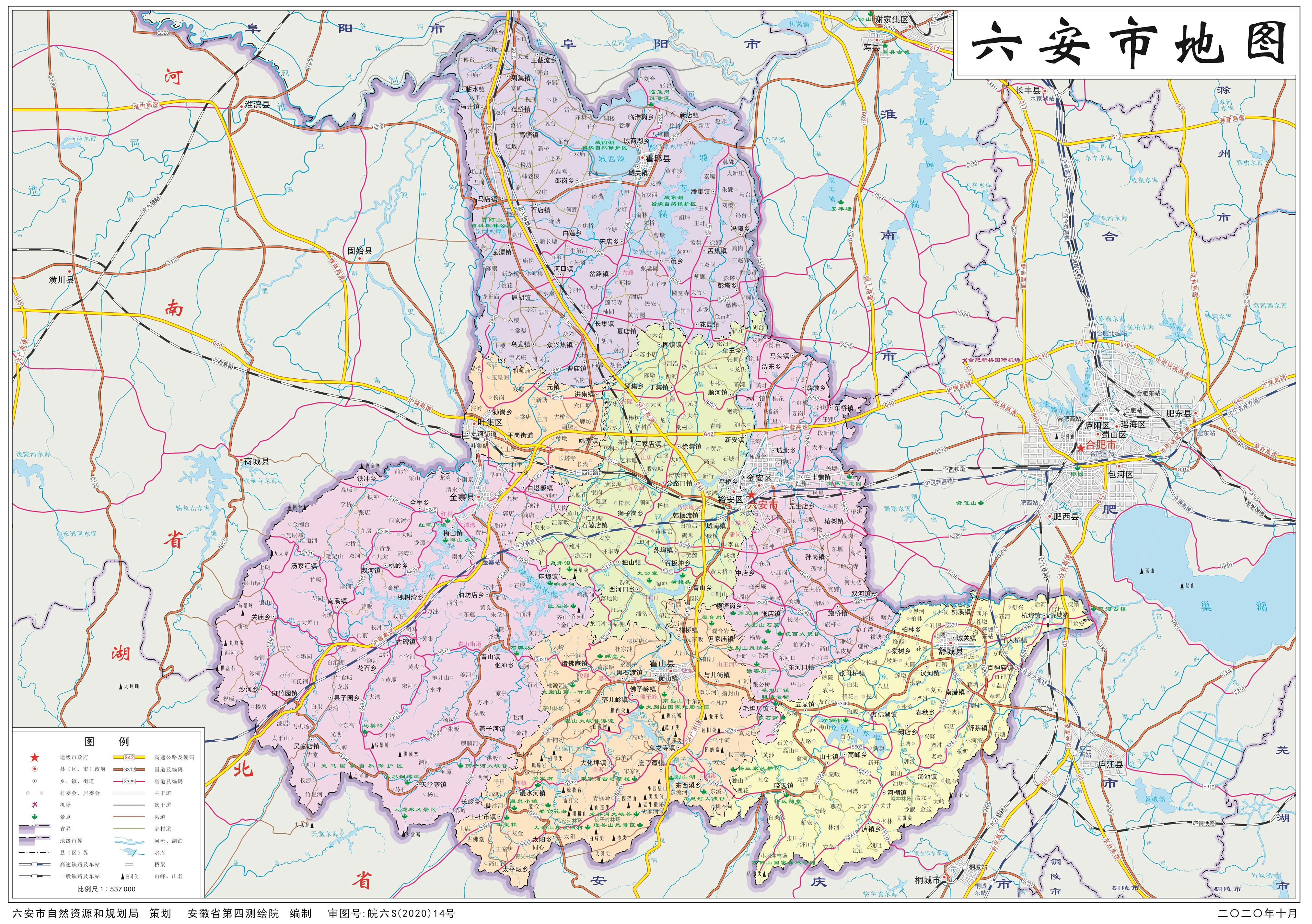 2015年12月3日,國務(wù)院批復(fù)同意將六安市壽縣劃歸淮南市管轄,至此,形成今六安市行政區(qū)域。