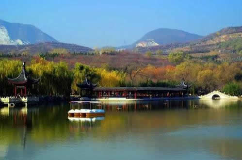 小江南:湖水面積16308平方米,湖邊小橋、挑臺(tái)、駁岸小路曲折。