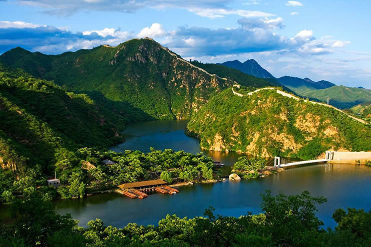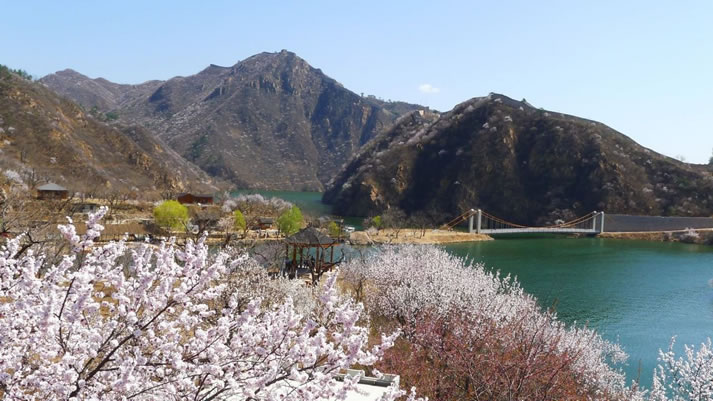 黃花城水長城 黃花城水長城位于九渡河鎮(zhèn)境內(nèi),距北京市區(qū)65公里,是以奇而著稱,融山川、碧水、古長城為一體的旅游休閑勝地。而這里的“ 三絕景 ”更是引人入勝,嘆為觀止。 “一絕”建于明永樂年間的長城盤旋于山脊之上,環(huán)繞在灝明湖畔,景色秀美壯觀。 “二絕”湖水將長城自然斷開,形成長城戲水、水沒長城的奇特景觀。 “三絕”明代板栗園,古樹盤根錯(cuò)節(jié),形態(tài)各異。那巨龍戲珠之軀和撐掩蒼天之冠,令人贊不絕口。 沿古道、過木橋、涉小溪、跨怪石,上行可達(dá)黑龍?zhí)。景區(qū)還有龍尾洞、紫翠峰、醉女山、石浪谷、情人峰、三珠連潭等自然景觀。 地名由來 因鎮(zhèn)域中部最大村名九渡河而得名。 地方特產(chǎn) 九渡河鎮(zhèn)為懷柔區(qū)板栗、核桃生產(chǎn)基地之一,另有梨、蘋果、柿子、紅果等。 |