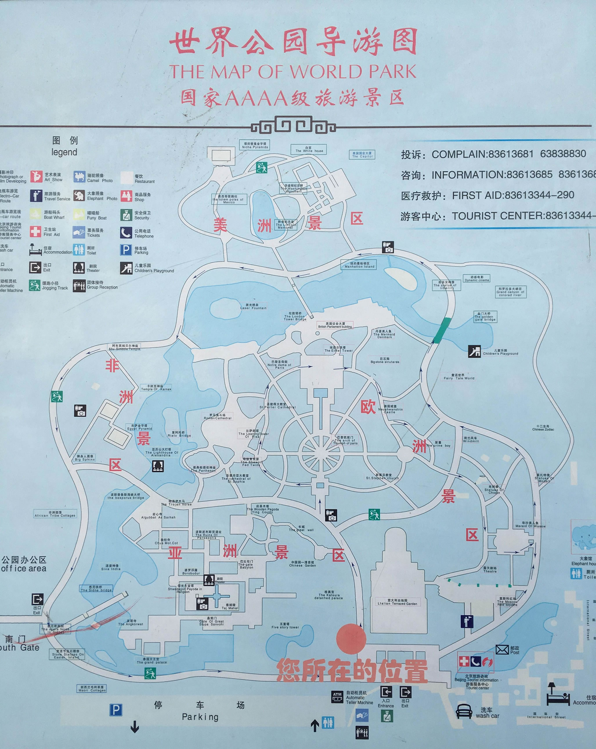 公園總面積為46.7萬平方米,主要分為兩部分,一是以世界各國名勝微縮景點戰(zhàn)火主體,按五大洲版圖劃分的公園景區(qū);二是以歐美建筑風格為主,集餐飲、購物、娛樂于一向體現(xiàn)異國情調(diào)的國際街。