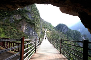 情人谷長300米,是景區(qū)內(nèi)最具浪漫情調(diào)的一段山谷。山谷有“舍身崖”“心型潭”,有仿古彩樓表演巴人后裔娶親的風(fēng)俗。