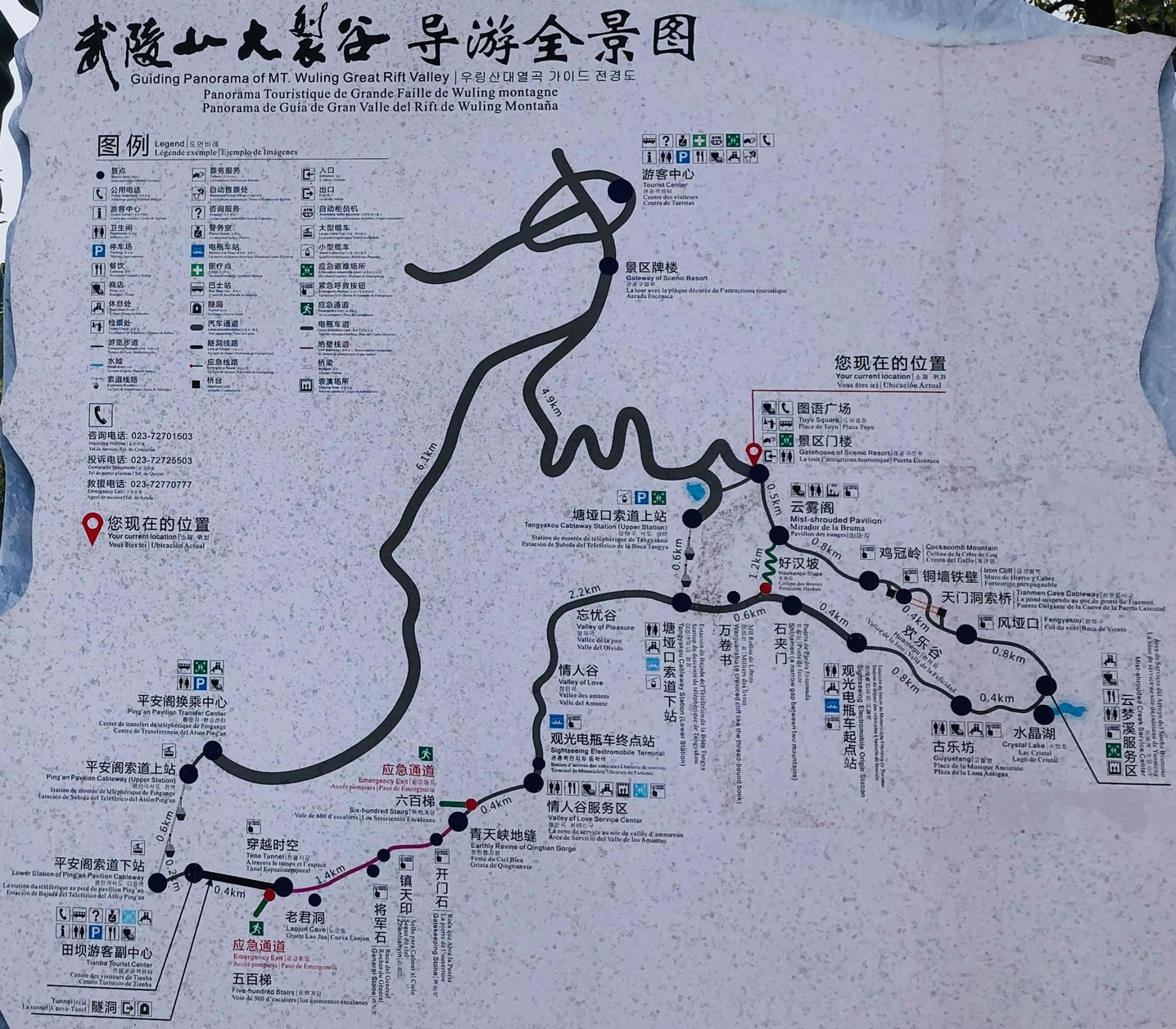 忘憂谷長1千米,屬典型的喀斯特槽谷景觀。峽谷里綠樹蔥蘢、青山靜謐、空谷清幽,讓人心境安寧,忘卻凡塵俗世的憂愁與煩惱,故名“忘憂谷”。
