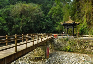 雙龍戲珠是峽谷溪流中一塊天然形成的石頭,仿佛巨大的珠子將潺潺流水分成兩道,流水猶如兩條靈動的小白龍圍繞著龍珠嬉戲游玩,故名雙龍戲珠。