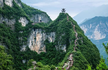 絕壁棧道位于龍缸景區(qū)映月洞至奓口石的游步道中,在數(shù)百米的懸崖上建設(shè)長約3320米的空中絕壁棧道,其中200米為全透明玻璃棧道。棧道分為牽手棧道和月影棧道兩個(gè)部分,徒步其間,一側(cè)是千尺奇峰,一側(cè)是深谷澗壑,仿佛驚險(xiǎn)地行走在天地之間。