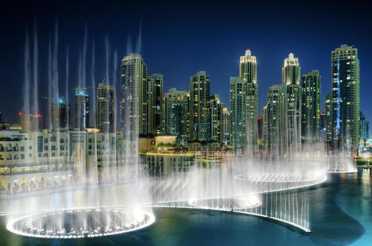 迪拜音樂(lè)噴泉 迪拜音樂(lè)噴泉(Dubai Fountain)是世界最大的噴泉,也是最壯觀的噴泉。 迪拜音樂(lè)噴泉由原世界第一美國(guó)Bellagio噴泉的制造商WET公司設(shè)計(jì)的,總投資2.18億美元,總長(zhǎng)度為275米,最高可以噴到150米,相當(dāng)與一棟50層樓的高度。據(jù)報(bào)道迪拜音樂(lè)噴泉的燈光可以在20英里的內(nèi)任何一個(gè)地方看到,讓它成為中東地區(qū)最亮的焦點(diǎn)。 該噴泉會(huì)噴射2.2萬(wàn)加侖的水,并配有6600個(gè)燈光以及50個(gè)彩色投影機(jī)。噴出的水柱有1000多種變化,可以說(shuō)是名副其實(shí)的千變?nèi)f化。伴隨著數(shù)首阿拉伯以及來(lái)自世界各地的歌曲,噴灑的水柱像是在人們面前跳著優(yōu)雅的舞蹈,每一場(chǎng)使用的音樂(lè)不同、編排的舞姿也不同。 音樂(lè)噴泉平日每天從晚上6點(diǎn)到10點(diǎn),每半小時(shí)表演一次,每次表演長(zhǎng)達(dá)3-5分鐘,周末從晚上6點(diǎn)表演到11點(diǎn)、并在晚上9點(diǎn)后增加至每20分鐘表演一次。