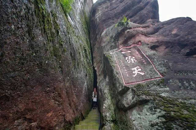著名旅行家徐霞客于明崇禎三年(1630年)記敘了這一奇觀:“上辟山巔,遠透山北,中不能容肩,蓋之乃受,累級斜上,直貫其中。余所見‘一線天’數(shù)處,武夷、黃山、浮蓋,未曾見若此之大而逼、遠而整者”。每當午時,晴空麗日,陽光直射,翹首仰望,只見天光一線,壯麗無比。
