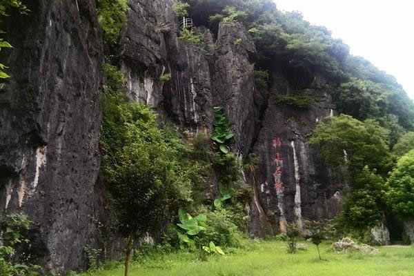 特殊地貌形成兩邊懸崖對峙,這條小澗叫桃花澗,從景區(qū)深處流出,我們的游路也將沿著高山峽谷的縫隙向內(nèi)延伸。桃源洞本沒有“洞”,無論是步行,還是泛舟游覽,都給人一種洞口的感覺右壁的懸崖高達120米,“桃源洞口”四個大字刻在36米高處,是明萬歷年間,辭官回永安的名士陳源湛于1605年所題,每字兩米見方。