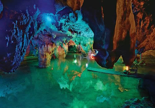自藏禾洞沿石階而上,便到了雷公洞。洞內(nèi)石筍和石鐘乳十分發(fā)達(dá),因巖石含有碳酸鈣、鐵質(zhì)、方解石、石英等成分,整個洞廳色彩斑斕。洞底暗河水聲隆隆,猶如雷鳴,故而得名。傳說天上雷神每年都要下來巡洞一次,在這里休息。