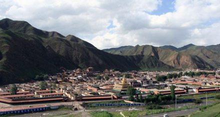 拉卜楞寺,位于甘南藏族自治州夏河縣城西0.5公里處。本名噶丹夏珠卜達(dá)吉益蘇奇貝瑯,簡(jiǎn)稱扎西奇寺,是我國(guó)藏傳佛教(即喇嘛教)格魯派(黃教)六大寺院之一,一般稱拉卜楞寺。第一世嘉木樣阿旺宋哲大師創(chuàng)建于清康熙四十八年(1709)?滴跷迨辏1714)建立“拉章”(即嘉木樣佛宮),“拉章”音變?yōu)椤袄防恪,意為寺院最高活佛府邸?/p>