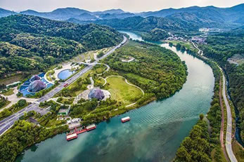 四周群山環(huán)抱,層巒疊翠,蜿蜒曲折的流溪河像一條飄帶縱貫其間。這里遍種梅、李、荔枝、松、柏、玉蘭等,到處綠竹成林,風(fēng)景秀麗,四季如春。加上樓臺、小亭、曲廊,參差錯落,臨溪倒影,將區(qū)內(nèi)環(huán)境點(diǎn)綴得格外幽雅,給人以恬靜的美感。
