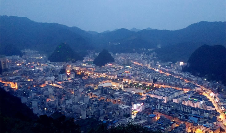 樂業(yè),隸屬于廣西百色市,被譽(yù)為“世界天坑之都”,位于廣西西北部,地處云貴東南麓,東北與河池市天峨、鳳山兩縣相鄰,東南依凌云縣,西南與田林接壤,西北與貴州省的冊亨、望謨、羅甸三縣隔紅水河相望?h城距國家重點工程龍灘水電站160公里,距百色市168公里,距廣西首府南寧市400公里,距貴州省省會貴陽市370公里,是重慶、貴州經(jīng)龍邦口岸(國家一類口岸)往東盟國家最為便捷的通道之一。樂業(yè)縣常住人口為146397人?偯娣e2633.17平方千米。全縣現(xiàn)轄4鎮(zhèn)4鄉(xiāng),有84個村民委(社區(qū))1084個村民小組。