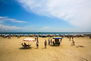 在銀灘長達七八個月的誘人泳季,在藍天白云下沐浴著燦爛的陽光,在潔白的沙灘上游玩嬉戲,在輕柔的波浪中盡情暢游,在微腥陣陣的海風中冥想;乘海上降落傘翱翔藍天,駕驚險刺激的摩托艇乘風破浪,還有悠閑輕松的沙灘運動,愉情悅性的鳥類表演,賞心悅目的異國風情歌舞,極目天涯,海天相連,漁帆點點。