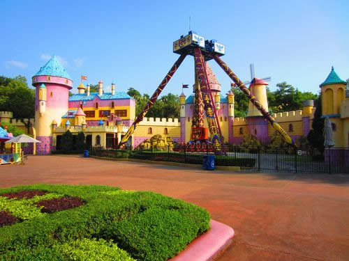 夢幻世界區(qū)是以西洋童話中的夢幻仙境為主題。這里的建筑多呈不規(guī)則形狀,將一些娛樂、服務設施裝飾成大樹、蘑菇等奇特造型。該區(qū)主要的游樂設施有: