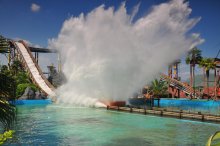 破浪過山車:破浪過山車的造型奇特,是一個五彩繽紛的大蚌殼。破浪過山車是一個小型的過山車,軌道長199米,最高點7.4米共有13部車,每部可乘2人,玩一次需3分鐘。過山車雖小型的,但彎度很大,成一個8字型,在高速運轉時,就會有一種被拋出去的感覺。車體在軌道上高速行駛,每次轉角都有一種被拋離的感覺。