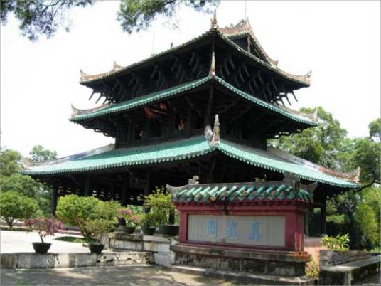 經(jīng)略臺真武閣,中國道教宮觀建筑,用于奉祀真武帝以鎮(zhèn)火災(zāi)。其結(jié)構(gòu)采用三層檐、歇山頂、穿斗式構(gòu)架,通高13.2米,面寬13.8米,進(jìn)深11.2米,總面積168平方米。其采用穿斗式構(gòu)架方式,把近3000根大小不一的格木構(gòu)件鑿榫卯眼,斜穿直套,串聯(lián)嵌合,彼此扶持,互相制約,不用一釘一鉚,也沒有一個鐵構(gòu)件,以“杠桿結(jié)構(gòu)”原理組成一個穩(wěn)固的統(tǒng)一體。