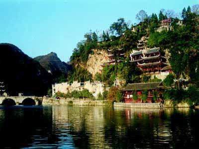青龍洞古建筑群始建于明洪武二十一年(1388年),迄今已有六百多年的歷史了。青龍洞集佛教經(jīng)殿、道教廟堂、儒家書(shū)院、會(huì)館為一體的佛、道、儒、俗古建筑群,全國(guó)獨(dú)有的中原建筑與苗侗吊腳樓干欄式巧妙結(jié)合的古建筑群號(hào)稱(chēng)“南方懸空寺”。