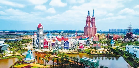 ?陂L影環(huán)球100奇幻樂園,位于海南省?谑行阌^(qū)椰海大道100號、西海岸長流鎮(zhèn)內(nèi),樂園一期占地837畝,總建筑面積168667.66平方米,由票務(wù)區(qū)、荷蘭區(qū)、中國區(qū)、德瑞聯(lián)合區(qū)、英國區(qū)、西班牙區(qū)6大園區(qū)組成,依托長影電影文化底蘊(yùn),邀請世界一流設(shè)計團(tuán)隊主持規(guī)劃,原汁原味地展現(xiàn)各國人文藝術(shù)與建筑特色。按四大主題分區(qū):絲路探險、光影奇境、魔幻谷、夢幻童世界。2020年5月掛牌為國家4A級景區(qū)。