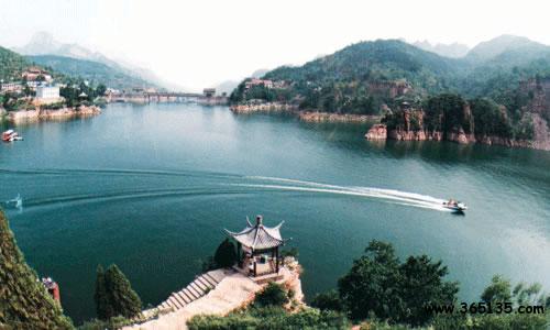 太行三峽—京娘湖 東太行山武安市京娘湖,據(jù)馮夢(mèng)龍編《警世通言》記載,宋太祖趙匡胤千里送京娘曾路宿于此山中。京娘是山西永濟(jì)人,年方十七歲, 隨父母去曲陽(yáng)燒香還愿遭劫,幸遇趙匡胤拔刀相救,千里護(hù)送,京娘感恩不盡,欲以終身相托。然而趙曰:“賢妹非是俺膠注鼓瑟,本為義氣千里相送,今若就私情與那個(gè)響馬何異?況施恩圖報(bào)非君子所為 。”京娘道:“恩兄高見(jiàn),妾今生不能補(bǔ)報(bào)大德,死當(dāng)銜環(huán)結(jié)草。 ”于是京娘投湖自盡,(后被追封為貞義夫人)京娘湖亦由此得名。 湖面呈倒“人”字型,分東西兩支,水面2445畝,水深20-50米。中間 山島建有“山頂公園”清山綠水與藍(lán)天白云相互輝映,薈萃人典故, 使此地有“太行三峽”之美稱,尤其是巖壁上當(dāng)年趙匡胤“云崖寄志 ”的題詞手跡“欲出未來(lái)光辣撻,千山萬(wàn)水如火發(fā)。須臾走向天上來(lái) ,趕卻殘星趕卻月”。及其它歷史傳說(shuō),使景區(qū)更加神秘誘人。這里 層巒疊嶂,群峰竟秀,波光粼粼,林林茂盛。夏季炎熱之時(shí),清爽宜 人,為避暑勝地。