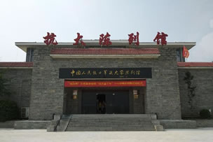 位于陳列館臺階正下方,占地1萬平方米。抗大在此辦學(xué)期間為學(xué)員操場和訓(xùn)練場,1941年5月,在這里隆重舉行了抗大五周年校慶活動。廣場與陳列館之間由30米寬的臺階相連接。