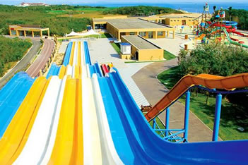 寶貝水城:小孩子的玩水樂園、歡樂的造夢空間。典型設(shè)備包括蝴蝶滑梯、青龍滑梯、鱷魚滑梯等設(shè)備,還有蝸牛號、椰果派、水風(fēng)車、向陽花、七彩蘑菇、彩虹門、三色花、鳥語花香、小妖精等可噴水可觀賞的童趣水景。寶貝水城色彩鮮艷,設(shè)施眾多,小孩們可以盡情嬉戲玩耍,激發(fā)兒童無窮的想象力和創(chuàng)造力。