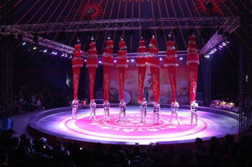 以展示集現(xiàn)代聲、光、電及各種高科技技術(shù)于一體的大型綜藝型雜技晚會,建筑面積5529平方米,突出反映中華民族自遠古黃帝時代至現(xiàn)代數(shù)千年的雜技發(fā)展史,有黃帝戰(zhàn)蚩尤、魏晉椽樟、水轉(zhuǎn)百戲、南園廟會等十幾個場景。