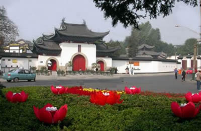 像,重一噸多,雕工細膩,技藝精湛,是1935年太虛法師訪問緬甸時,仰光的佛教徒贈送給我國的。象這樣精美的玉雕佛像,國內(nèi)僅有三尊,另兩尊分別在北京和上海。再如南北朝時埋藏的石刻觀音像,姿態(tài)輕盈,髻結(jié)敞胸,身佩纓絡(luò),手攜凈瓶,距今已有1400多年的歷史,具有較高的歷史藝術(shù)價值。還有兩尊紅木雕刻的達摩像,是清康熙初年的木雕精品,兩尊像,一坐一立,富有個性,生動表現(xiàn)出達摩面壁九年,閉目冥思、超然物外的形態(tài)。