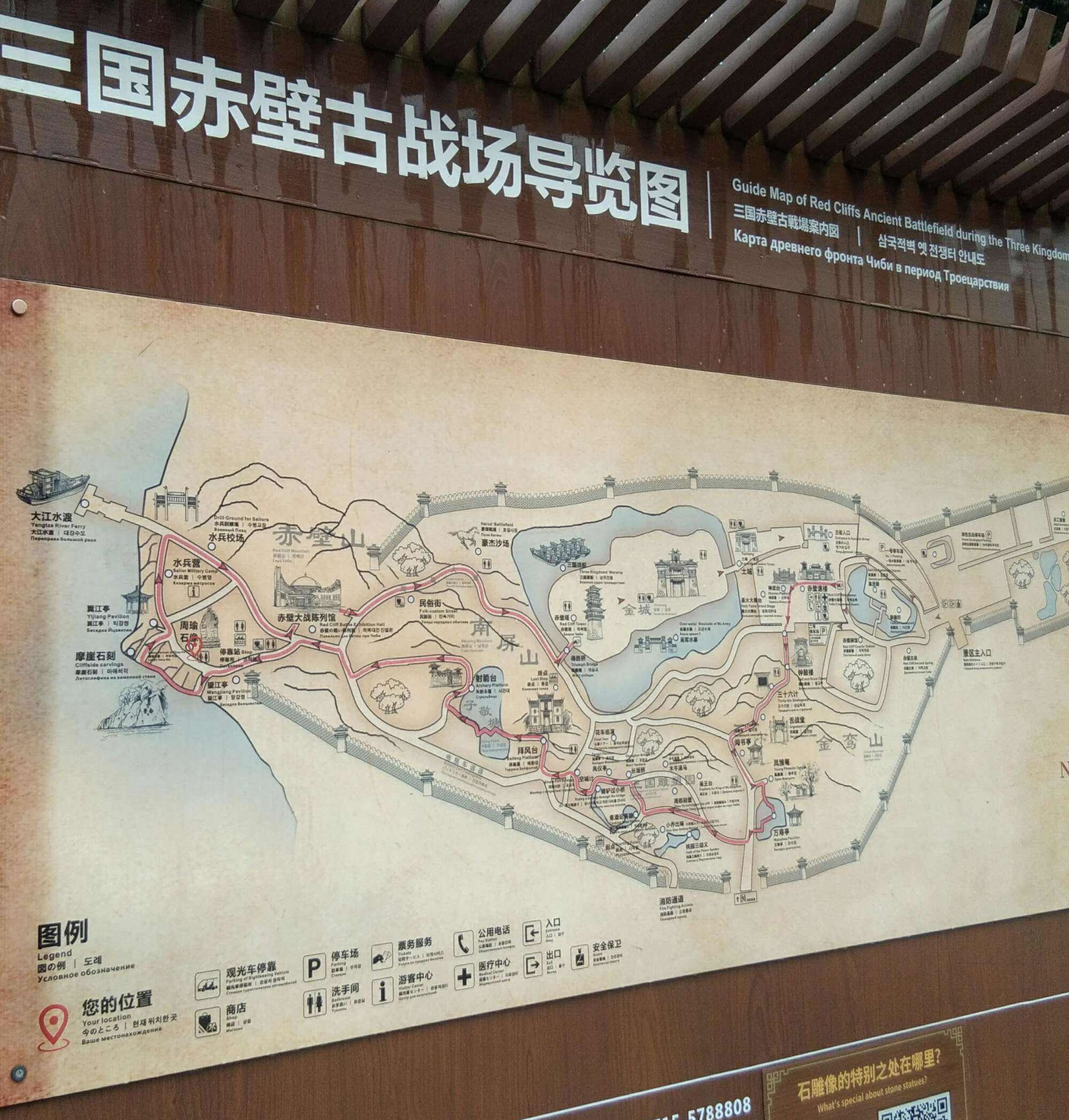 其主要景觀有:赤壁摩崖石刻、周瑜塑像、拜風(fēng)臺(tái)、鳳雛庵、翼江亭、赤壁大戰(zhàn)陳列館、赤壁碑廊、千年銀杏、三國(guó)雕塑園等。