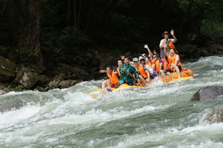 被譽(yù)為“中國生態(tài)第一漂”,位于東江湖最南端的黃草鎮(zhèn)境內(nèi),全程28千米。從龍王廟起漂點(diǎn)到燕子排終漂點(diǎn)整個(gè)落差75米,急灘108個(gè),漂流河道兩巖有保存比較完好的原始次森林,奇巖怪石林立,古樹遮天蔽日,老藤攀崖附壁,飛鳥跳躍枝頭。東江漂流以其灘多浪急落差大、水碧石怪魚奇怪、兩岸森林植被佳而 聞名,是國內(nèi)目前最具探險(xiǎn)的融歷險(xiǎn)、探幽、獵奇、拾趣為一體的漂流去處。
