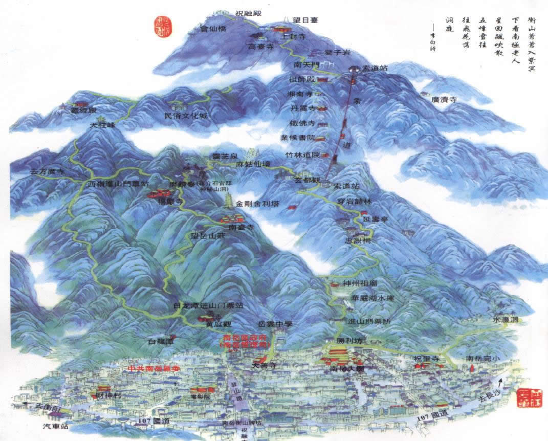 衡陽市南岳衡山旅游區(qū),位于湖南省衡陽市南岳區(qū)延壽路37號。在“五岳”中,衡山的地理位置靠南,有著“五岳獨秀”的美稱。而在中國膾炙人口的成語“壽比南山”中的南山,指的就是衡山。