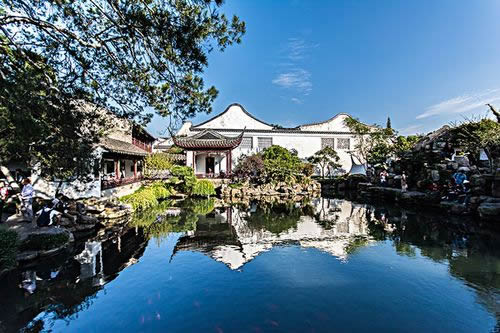 網(wǎng)師園,是蘇州典型的府宅園林。全園布局緊湊,建筑精巧,空間尺度比例協(xié)調(diào),以精致的造園布局,深蘊(yùn)的文化內(nèi)涵,典雅的園林氣息,成為江南中小古典園林的代表作品。園內(nèi)的山水布置和景點(diǎn)題名蘊(yùn)含著濃郁的隱逸氣息。乾隆末年園歸瞿遠(yuǎn)村,按原規(guī)模修復(fù)并增建亭宇,俗稱(chēng)“瞿園”。今“網(wǎng)師園”規(guī)模、景物建筑是瞿園遺物,保持著舊時(shí)世家一組完整的住宅群及中型古典山水園。