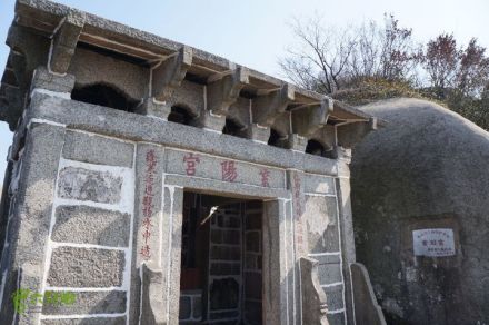 紫陽(yáng)宮為當(dāng)?shù)厝思o(jì)念鄧禹修建的道觀。全部采用花崗巖砌成,石屋巍峨,建筑華麗。門前橫梁正中刻著“紫陽(yáng)宮”三字,宮內(nèi)供奉鄧禹石像。兩側(cè)石柱之上刻有對(duì)聯(lián)一副:“一竅道通沖北極,萬(wàn)年仙境鎮(zhèn)西山”。石室下方有鄧仙洞、鄧真君墓、起居石室。