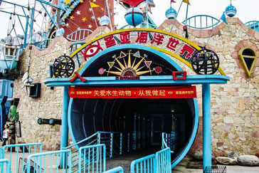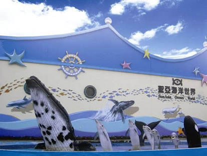 以展示海洋動(dòng)物為主,常年有海豚、白鯨、鯊魚表演。1995年6月對游人開放,是海底通道式水族館,擁有當(dāng)時(shí)亞洲最長的118米海底通道,開創(chuàng)了中國第三代水族館建設(shè)的先河。2005年7月,圣亞海洋世界改版,把海洋館與主題樂園的模式有機(jī)地融合在一起,讓游客如同一出海洋情景劇中的角色,完成“從陸地進(jìn)入海底,再從海底回到海上”的奇幻旅程,圣亞海洋世界也因此成為一座情景式海洋主題樂園。