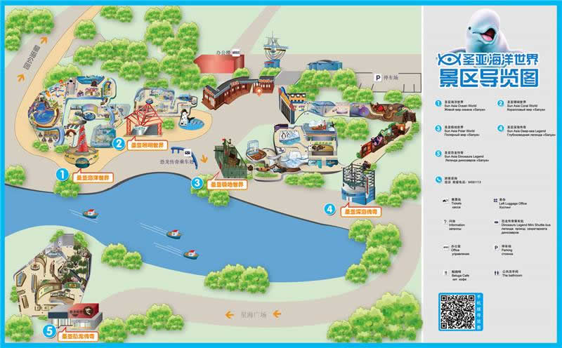 極地大本營→檢票口→海豹灣(旺季有小型表演及游客互動(dòng))→極地飛船→白鯨水下表演場(《白鯨傳奇》)表演→北極動(dòng)物村(北極狼、中國最大北極熊、北極狐)→南極企鵝島(中國最大南極企鵝基地)→海豹投喂區(qū)→觀海平臺(tái)(餐飲、休閑區(qū))→《功夫海象》表演場→出口