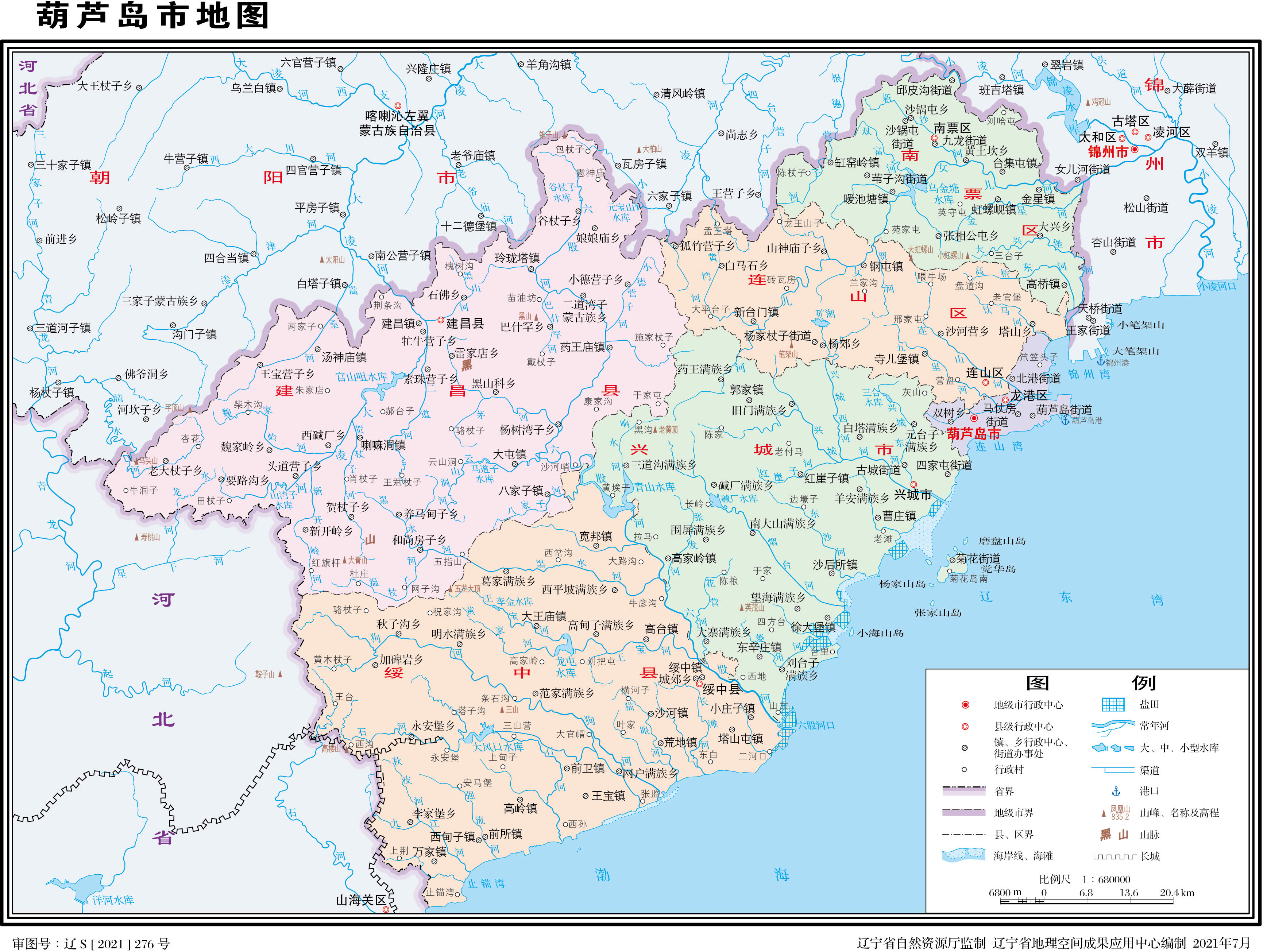 葫蘆島市轄3個市轄區(qū)、2個縣,代管1個縣級市: