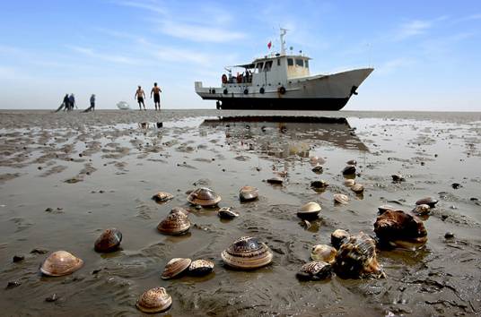 渤海遼東灣的萬頃碧波,遮掩著數(shù)不盡的珍奇異寶。盤錦市西南部的二界溝海邊的蛤蜊崗就是一處神奇的所在。乘坐漁船,來到蛤蜊崗上,等潮水漸漸地落下去,一片金色沙灘從海水中顯露出來,挽起褲腿,甩掉鞋子,光腳踩上松軟的沙灘,令人有說不出的爽適與愜意。