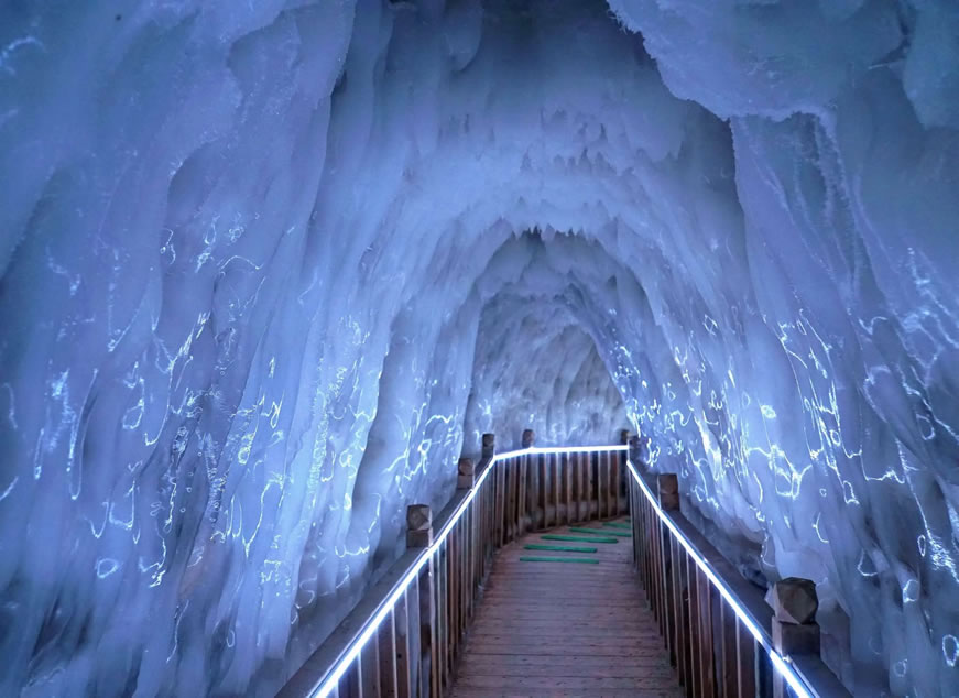 - 特色:在五彩燈光的映照下,冰洞呈現(xiàn)出夢幻般的景象,仿佛置身于童話世界。