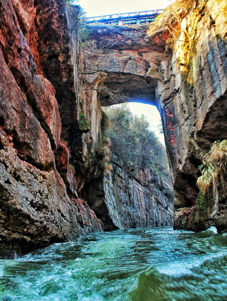 - 從景區(qū)東門進(jìn)入,依次游覽天生橋、胭脂河。