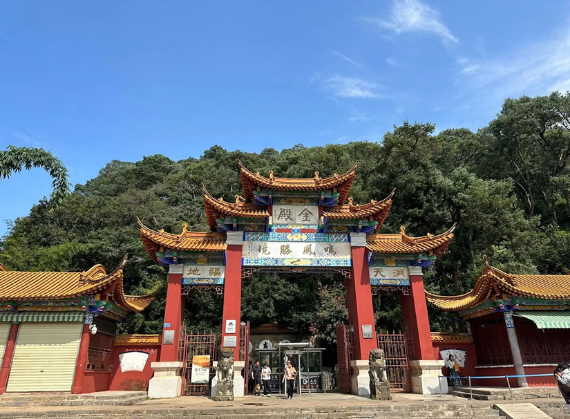 昆明金殿名勝區(qū),位于云南省昆明市盤(pán)龍區(qū)穿金路771號(hào)。明萬(wàn)歷三十年(1602年),云南巡撫陳用賓在鳴鳳山創(chuàng)建呂仙祠、太和宮、三元官3組道觀建筑群,占地面積1773畝。東臨金殿水庫(kù),南接中國(guó)'99世界園藝博覽園,西南鄰穿金路與昆明城區(qū)連接,北有金黑公路、昆曲高速公路。昆明金殿名勝區(qū),擁有太和宮金殿、明清古建筑群等及茶花園、杜鵑園、木蘭園、旅類(lèi)園、水景園、薔薇園、珍稀瀕危植物園等12個(gè)植物專(zhuān)類(lèi)園。