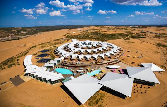 響沙灣旅游景區(qū)在沙漠深處打造了4處休閑區(qū),有以沙漠運動及游樂為主題的仙沙島,以藝術與體育為主題的悅沙島,以蒙古文化為主題的福沙島,還有以佛教文化為主題的蓮沙島。蓮沙度假島上規(guī)模宏大的蓮花酒店,是一座設計理念先進、綠色環(huán)保的生態(tài)度假型酒店。