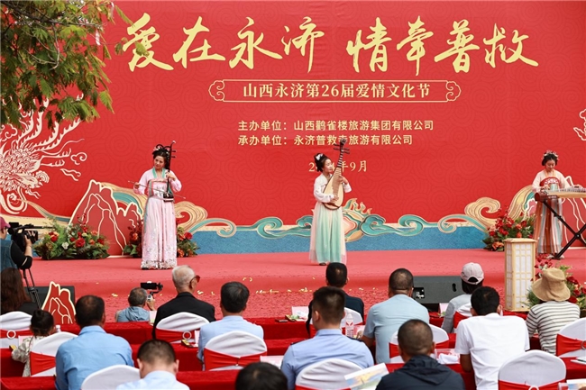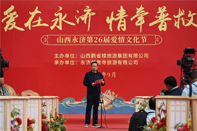 9月 21 日,普救寺迎來了第 26 屆愛情文化節(jié)的盛大開幕式。開場節(jié)目《蒲州花傘》瞬間將人們帶入了濃郁的地域風情之中。隨后,主持人隆重介紹到場領(lǐng)導(dǎo)嘉賓。永濟市政府黨組成員崔子龍發(fā)表了誠摯而熱情的致辭,表達了對愛情文化節(jié)的美好祝愿和對永濟文化旅游事業(yè)的殷切期望。市委宣傳部部長李朝霞宣布開幕,正式拉開了本次愛情文化節(jié)的精彩帷幕。