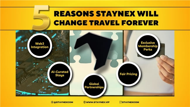 作為旅游行業(yè)的先驅(qū),Staynex 將數(shù)字技術(shù)與現(xiàn)實(shí)世界的專業(yè)服務(wù)無(wú)縫融合,重新定義探索世界的方式。通過(guò)獨(dú)特的 Web2.5 戰(zhàn)略,打造了獨(dú)家合作伙伴關(guān)系與企業(yè)聯(lián)盟,為酒店及度假村預(yù)訂提供無(wú)與倫比的價(jià)值與優(yōu)惠。 整合了 Web3 技術(shù)和人工智能,具有真實(shí)世界資產(chǎn)(RWA)層。通過(guò) “權(quán)益池”(Stake & Claim Pool)的經(jīng)濟(jì)收益模式。全球 250 多萬(wàn)家酒店和服務(wù)式公寓達(dá)成合作,提供專享價(jià)格。