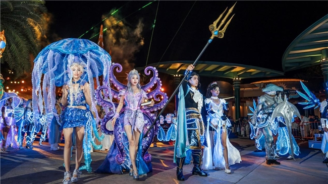 在本次活動中,特別設(shè)置的NPC(非玩家角色)演藝巡游活動成為一大亮點(diǎn)。亞特蘭蒂斯原創(chuàng)NPC“海洋七子”驚艷出場,包括擁有無限力量、守護(hù)光明正義的阿特拉斯王子,用優(yōu)雅的歌聲喚醒深海綺夢的人魚星娜,預(yù)言洞悉萬物、感知生命力量的章魚菲婭,智慧引領(lǐng)科技、把握未來方向的海龜拉斐爾,勇敢成為利刃、開啟榮耀之路的鯊魚坦克,在美麗的星光下閃耀夢幻光芒的水母歐若拉,以及愛能穿梭角落、點(diǎn)亮浩瀚海洋的海馬維納斯。演員們身著奇幻服飾,化身這些海洋生物形象,在園區(qū)內(nèi)巡游展演,與游客近距離互動,創(chuàng)造了難忘的度假記憶。