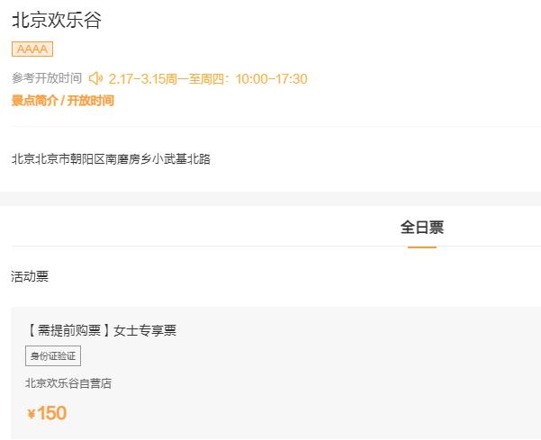 2025年3月1日至3月9日,女士特惠票限時(shí)售價(jià)99元/人(平日150元/人)