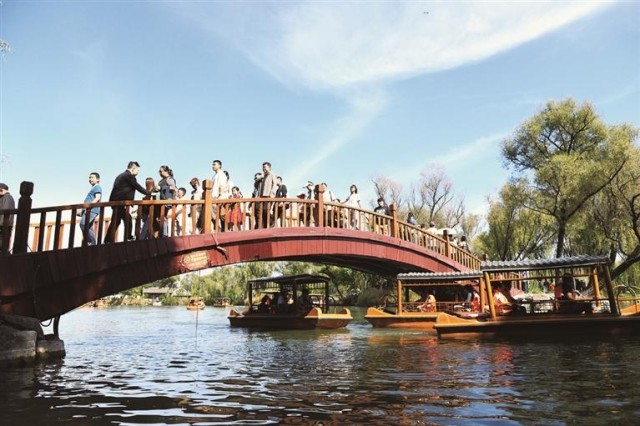 為保障游客游玩體驗,我市針對“雙節(jié)”旅游高峰,承德避暑山莊景區(qū)制定專項工作方案與預(yù)案,在麗正門加裝引導(dǎo)護(hù)欄保障游客有序入園,在正宮區(qū)、湖區(qū)的道路狹窄處、橋梁處增加疏導(dǎo)人員,通過監(jiān)控關(guān)注煙雨樓、金山、熱河泉等景點客流,人員聚集時即刻疏導(dǎo)、廣播分流;同時對一線工作人員開展服務(wù)禮儀培訓(xùn),推進(jìn)“笑臉行動”,全面維修維護(hù)旅游服務(wù)設(shè)施、清掃環(huán)境衛(wèi)生,并調(diào)配全系統(tǒng)兩級機(jī)關(guān)人員補(bǔ)充到一線崗位,用細(xì)致服務(wù)讓游客游得舒心、玩得安心。