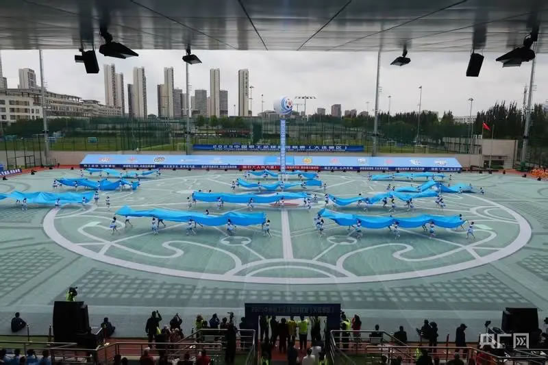揭幕戰(zhàn)開始前,大連職工傾情演繹的主題表演《大海啊故鄉(xiāng)》,成為表演節(jié)目中的一抹亮色,舞臺上藍色海浪涌動,職工青春的活力與濱城的海韻完美交融,將開放包容的城市氣質(zhì)化作澎湃的視覺交響,藝術(shù)化呈現(xiàn)了大連職工足球發(fā)展的歷史。健排舞《我愿全速奔向你》,原創(chuàng)舞蹈《大連雄風(fēng)》,歌舞表演《奔跑》等節(jié)目充分展示了大連城市發(fā)展活力和開放文明新形象,展現(xiàn)了大連職工昂揚向上、積極進取的精神風(fēng)貌。伴隨著激昂的樂曲,來自大連市實驗小學(xué)和沙河口區(qū)東北路小學(xué)兩所國內(nèi)知名足球特色學(xué)校的孩子們,帶來了精彩的顛球表演,孩子們個個精神抖擻、技藝嫻熟,把現(xiàn)場的氛圍推向高潮。