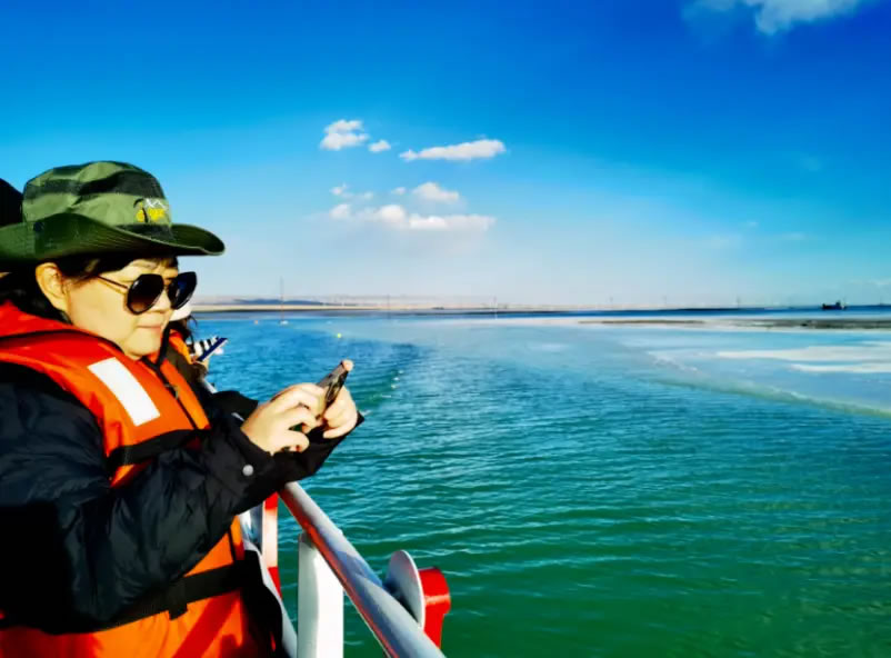 10月14日,由中共海西州委宣傳部主辦、西海都市報(bào)社承辦的“紅杞風(fēng)光別樣美 ”活動(dòng),走進(jìn)海西蒙古族藏族自治州烏蘭縣,研學(xué)團(tuán)隊(duì)來到茶卡鹽湖,乘坐游船觀光,湖面上駛來的大型運(yùn)鹽船讓外省記者及學(xué)生不由感嘆:沒想到“天空之鏡”還有另外一種獨(dú)特景致。湖面上駛來的大型運(yùn)鹽船吸引了研學(xué)團(tuán)隊(duì)成員的目光。采鹽船正在鹵水中作業(yè),發(fā)出低沉的轟鳴,空氣中彌漫著咸潤(rùn)的氣息。研學(xué)的同學(xué)通過實(shí)地觀察鹵水的蒸發(fā)、結(jié)晶過程,將課本上的地理、化學(xué)知識(shí),與這片壯麗的現(xiàn)實(shí)場(chǎng)景融會(huì)貫通。